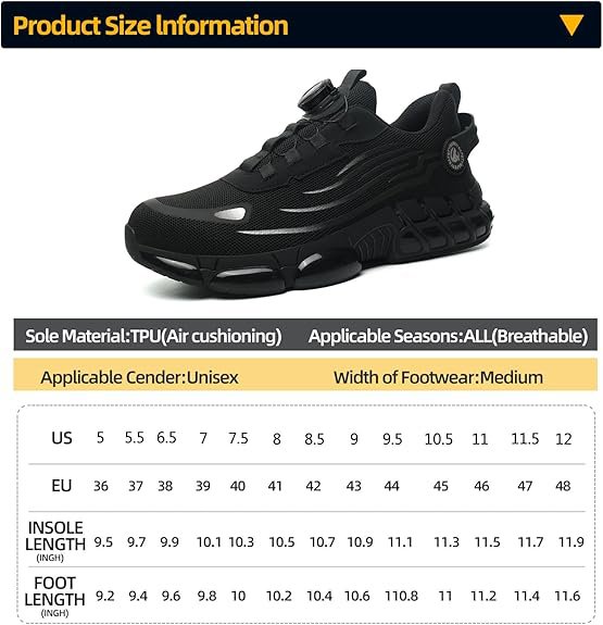 - Steel Toe Protection: Safeguards against punctures and impacts for enhanced workplace safety.